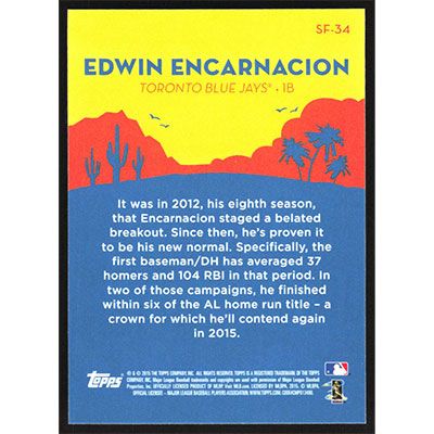 This is a 2015 Topps Spring Fever Edwin Encarnacion baseball card. The card is #SF-34 and pictures show condition.