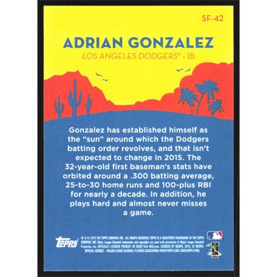 This is a 2015 Topps Spring Fever Adrian Gonzalez baseball card. The card is #SF-42 and pictures show condition.