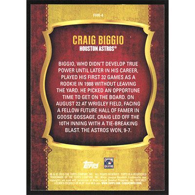 This is a 2015 Topps Update First Home Run Craig Biggio baseball card. The card is #FHR-4 and pictures show condition.