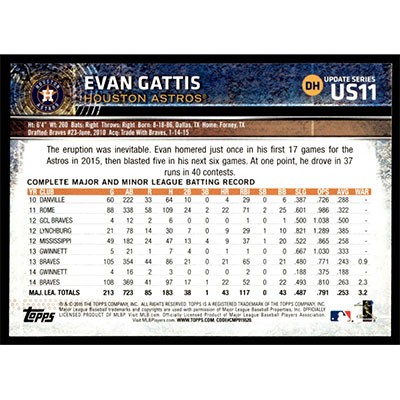 This is a 2015 Topps Update Evan Gattis Future Stars baseball card. The card is #US11 and pictures show condition.
