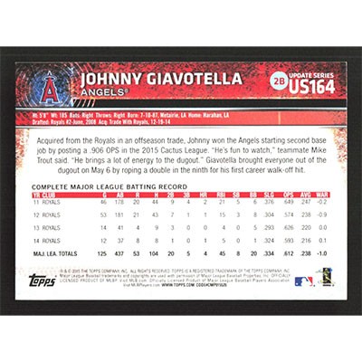 This is a 2015 Topps Update Johnny Giavotella baseball card. The card is #US164 and pictures show condition.