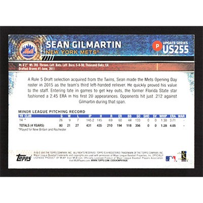 This is a 2015 Topps Update Sean Gilmartin baseball card. The card is #US255 and pictures show condition.