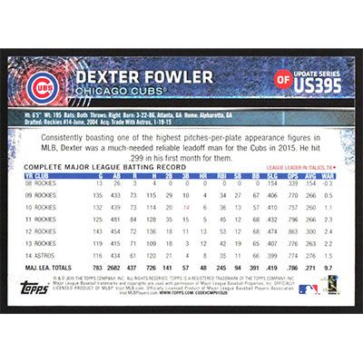 This is a 2015 Topps Update Dexter Fowler baseball card. The card is #US395 and pictures show condition.