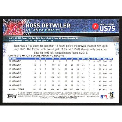 This is a 2015 Topps Update Ross Detwiler baseball card. The card is #US75 and pictures show condition.