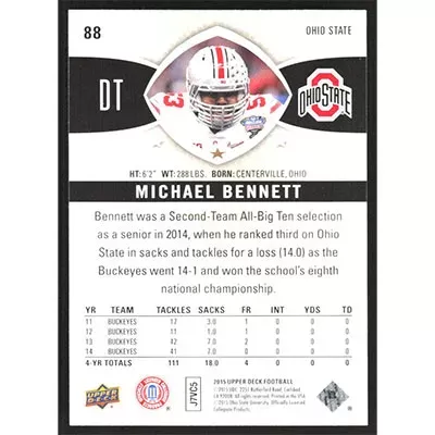 This is a 2015 Upper Deck Michael Bennett Star Rookie football card. The card is #88 and pictures show condition.