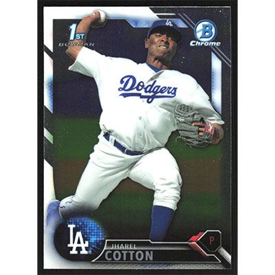 This is a 2016 Bowman Chrome Prospects Jharel Cotton baseball card. The card is #BCP26 and pictures show condition.