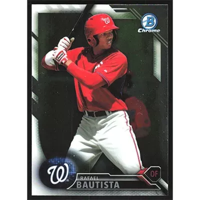 This is a 2016 Bowman Chrome Prospects Rafael Bautista baseball card. The card is #BCP49 and pictures show condition.