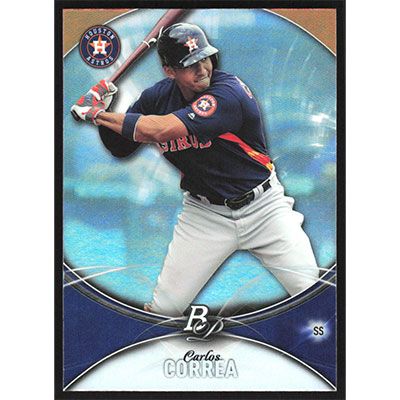 This is a 2016 Bowman Platinum Carlos Correa baseball card. The card is #97 and pictures show condition.