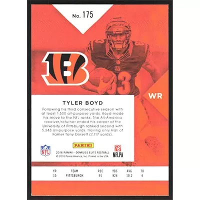 This is a 2016 Elite Retail Green Tyler Boyd football card. The card is #175 and pictures show condition.