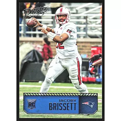 This is a 2016 Prestige Jacoby Brissett football card. The card is #214 and pictures show condition.