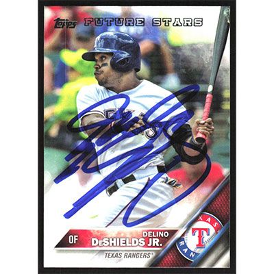 This is a 2016 Topps Delino DeShields Jr. Future Stars autographed baseball card. This card has been signed, in blue, by Delino DeShields Jr., and is guaranteed authentic by Ballcardz.com. The card is #19 and pictures show condition.