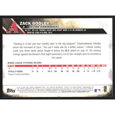 This is a 2016 Topps Zack Godley baseball card. The card is #290 and pictures show condition.