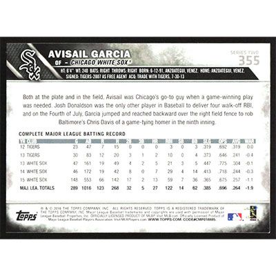 This is a 2016 Topps Avisail Garcia baseball card. The card is #355 and pictures show condition.