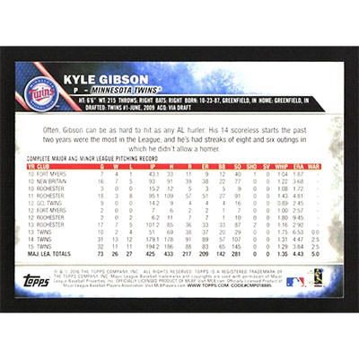 This is a 2016 Topps Kyle Gibson baseball card. The card is #561 and pictures show condition.