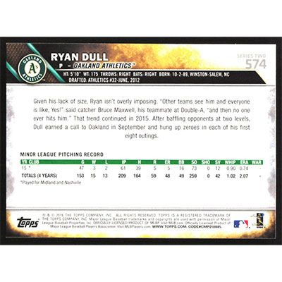 This is a 2016 Topps Ryan Dull baseball card. The card is #574 and pictures show condition.