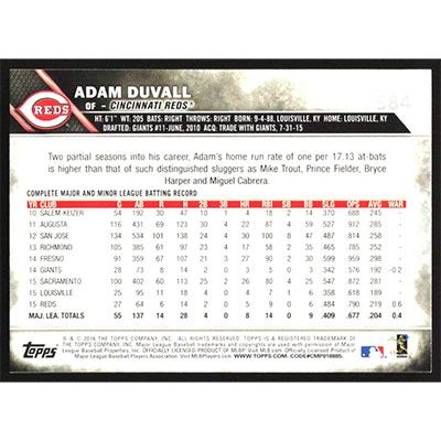 This is a 2016 Topps Adam Duvall baseball card. The card is #584 and pictures show condition.