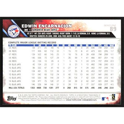 This is a 2016 Topps Edwin Encarnacion baseball card. The card is #89 and pictures show condition.