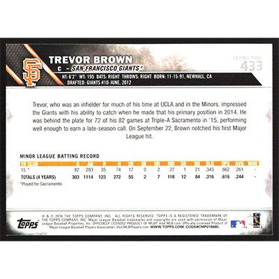 This is a 2016 Topps All-Star Game Silver Trevor Brown baseball card. The card is #433 and pictures show condition. Team(s): San Francisco Giants Rookie Card (RC)