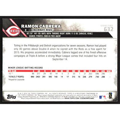 This is a 2016 Topps All-Star Game Silver Ramon Cabrera baseball card. The card is #632 and pictures show condition. Team(s): Cincinnati Reds Rookie Card (RC)
