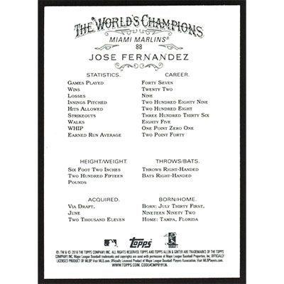 This is a 2016 Topps Allen & Ginter Jose Fernandez baseball card. The card is #88 and pictures show condition.