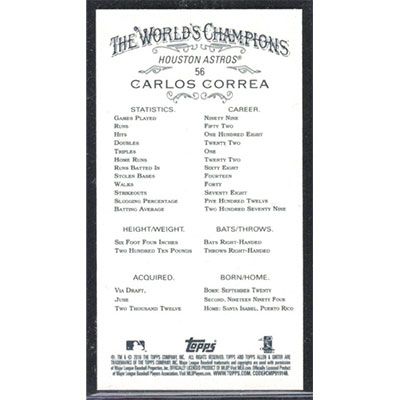 This is a 2016 Topps Allen & Ginter Mini Carlos Correa baseball card. The card is #56 and pictures show condition.