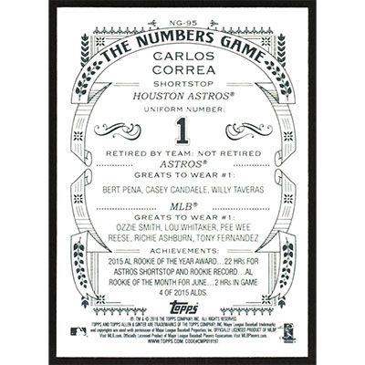 This is a 2016 Topps Allen & Ginter The Numbers Game Carlos Correa baseball card. The card is #NG-95 and pictures show condition.