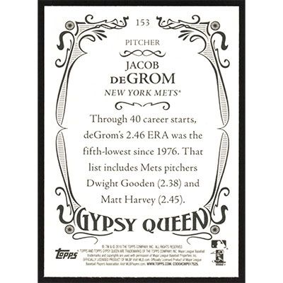 This is a 2016 Topps Gypsy Queen Jacob deGrom baseball card. The card is #153 and pictures show condition.