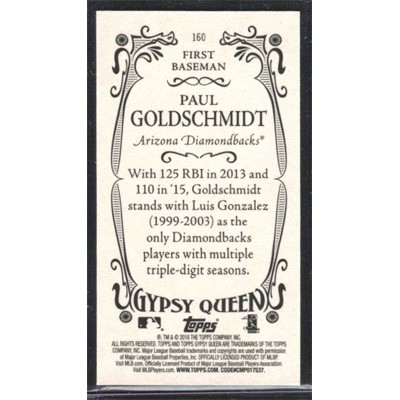This is a 2016 Topps Gypsy Queen Mini Paul Goldschmidt baseball card. The card is #160 and pictures show condition.