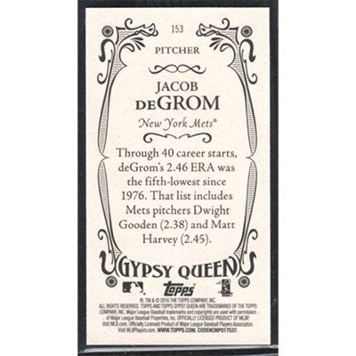 This is a 2016 Topps Gypsy Queen Mini Variations Jacob deGrom baseball card. The card is #153 and pictures show condition.