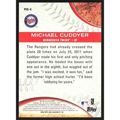 This is a 2016 Topps Pressed Into Service Michael Cuddyer baseball card. The card is #PIS-4 and pictures show condition.