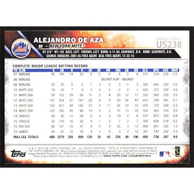 This is a 2016 Topps Update Alejandro De Aza baseball card. The card is #US238 and pictures show condition.