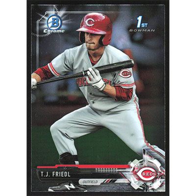 This is a 2017 Bowman Chrome Prospects T.J. Friedl baseball card. The card is #BCP71 and pictures show condition.