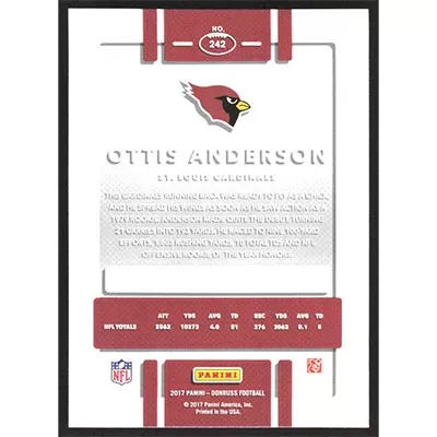 This is a 2017 Donruss Press Proof Red Ottis Anderson football card. The card is #242 and pictures show condition.