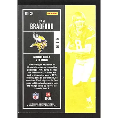 This is a 2017 Panini Contenders Sam Bradford football card. The card is #35 and pictures show condition.