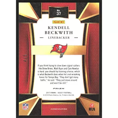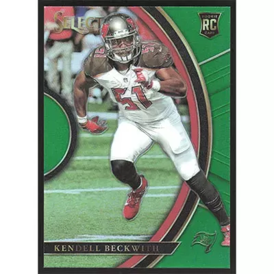 This is a 2017 Select Prizm Green Kendell Beckwith football card. The card is #37 and pictures show condition. This card is limited; #'d 5-Apr. Team: Tampa Bay Buccaneers Rookie Card
