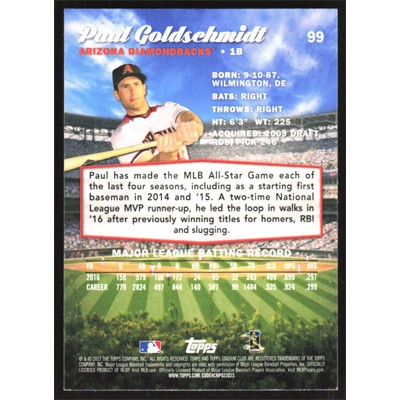 This is a 2017 Stadium Club Paul Goldschmidt baseball card. The card is #99 and pictures show condition.