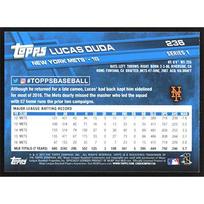 This is a 2017 Topps Lucas Duda UER baseball card with Eric Campbell pictured. The card is #236 and pictures show condition. Team(s): New York Mets