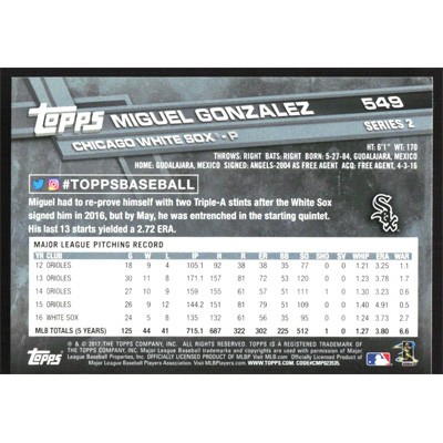 This is a 2017 Topps Miguel Gonzalez baseball card. The card is #549 and pictures show condition.