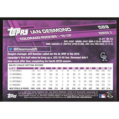 This is a 2017 Topps Ian Desmond baseball card. The card is #589 and pictures show condition.