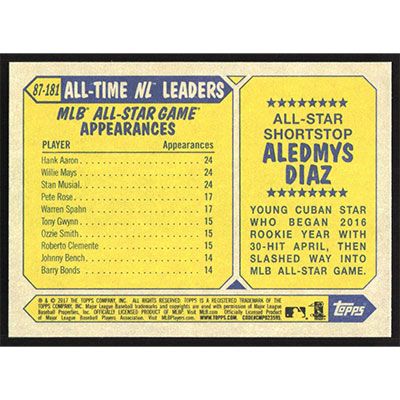 This is a 2017 Topps '87 Aledmys Diaz All-Star baseball card. The card is #87-181 and pictures show condition.