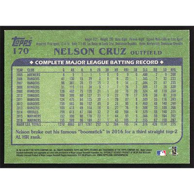 This is a 2017 Topps Archives Nelson Cruz baseball card. The card is #170 and pictures show condition.
