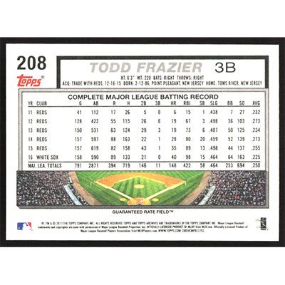 This is a 2017 Topps Archives Todd Frazier baseball card. The card is #208 and pictures show condition.