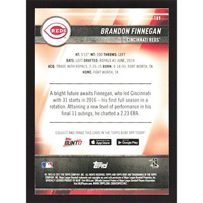 This is a 2017 Topps Bunt Brandon Finnegan baseball card. The card is #189 and pictures show condition.