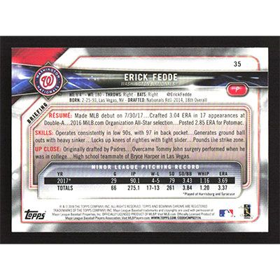 This is a 2018 Bowman Erick Fedde baseball card. The card is #35 and pictures show condition.