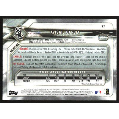 This is a 2018 Bowman Avisail Garcia baseball card. The card is #77 and pictures show condition.