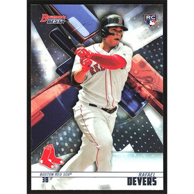This is a 2018 Bowman's Best Rafael Devers baseball card. The card is #4 and pictures show condition.