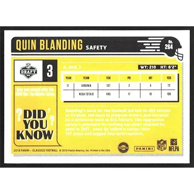 This is a 2018 Classics Quin Blanding football card. The card is #264 and pictures show condition.