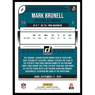 This is a 2018 Donruss Mark Brunell football card. The card is #137 and pictures show condition.