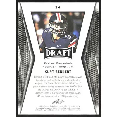 This is a 2018 Leaf Draft Kurt Benkert football card. The card is #34 and pictures show condition.