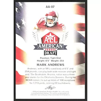 This is a 2018 Leaf Draft All American Mark Andrews football card. The card is #AA-07 and pictures show condition.